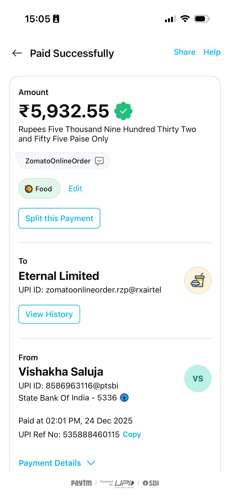 - Status changed from Payment Initiated to Paid